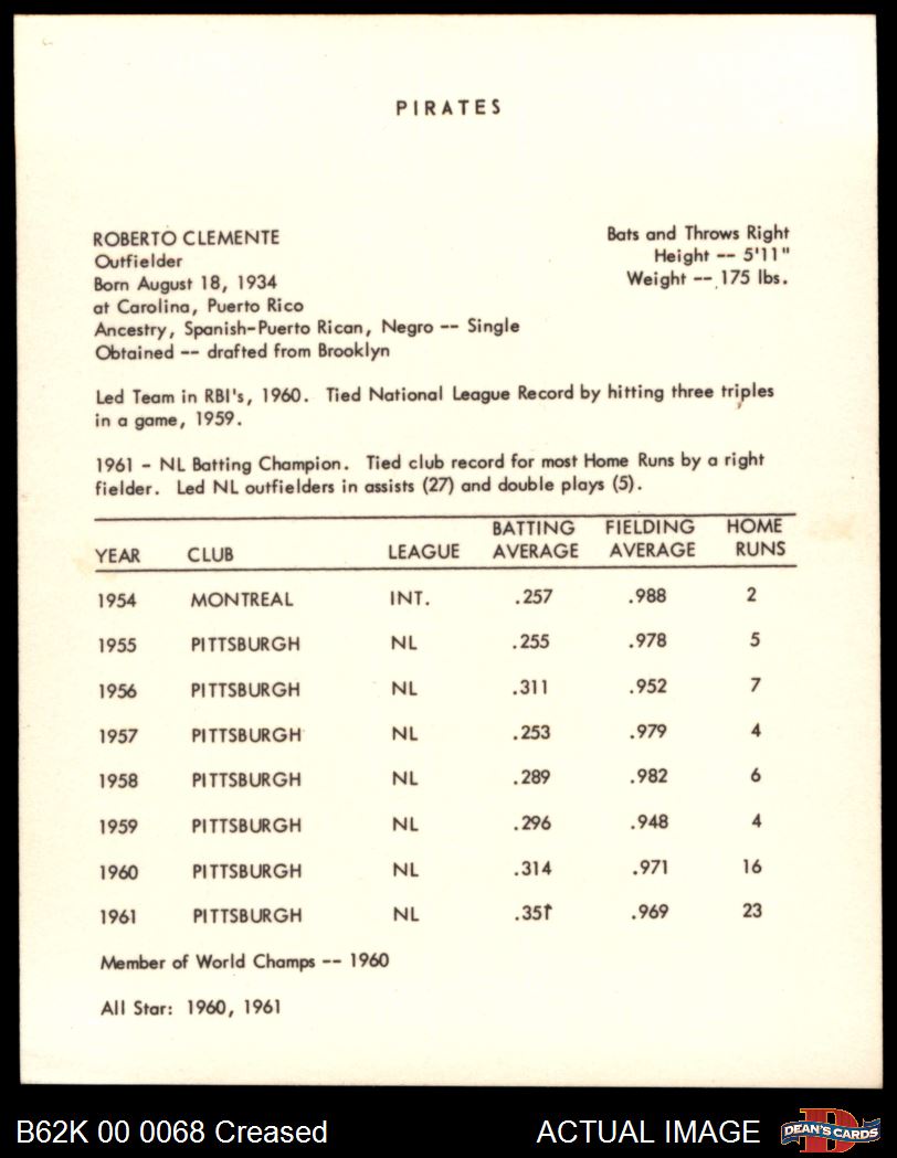 1962 Kahn's Roberto Clemente