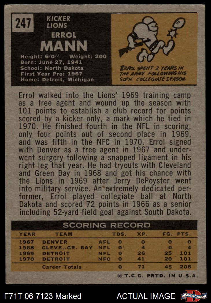 1971 Topps #247 Errol Mann 1.5 - FAIR