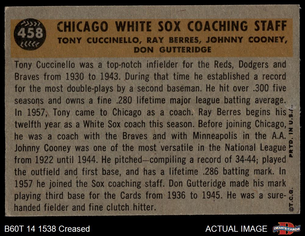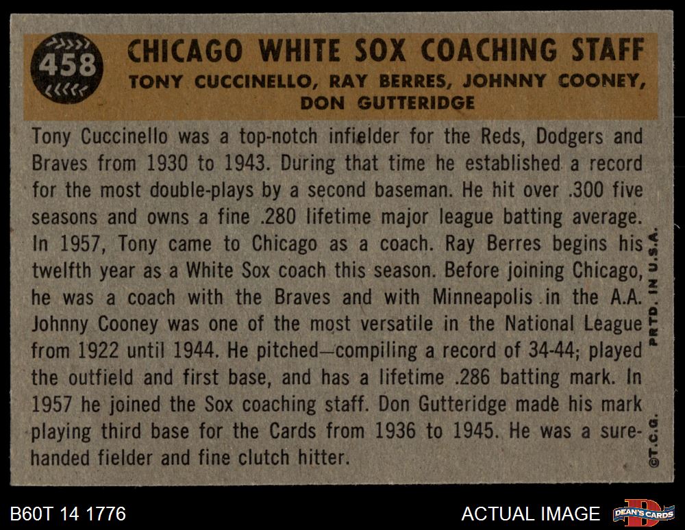 1960 Topps #458 White Sox Coaches