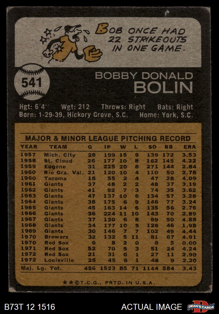 1973 Topps #541 Bobby Bolin 2.5 - GD+
