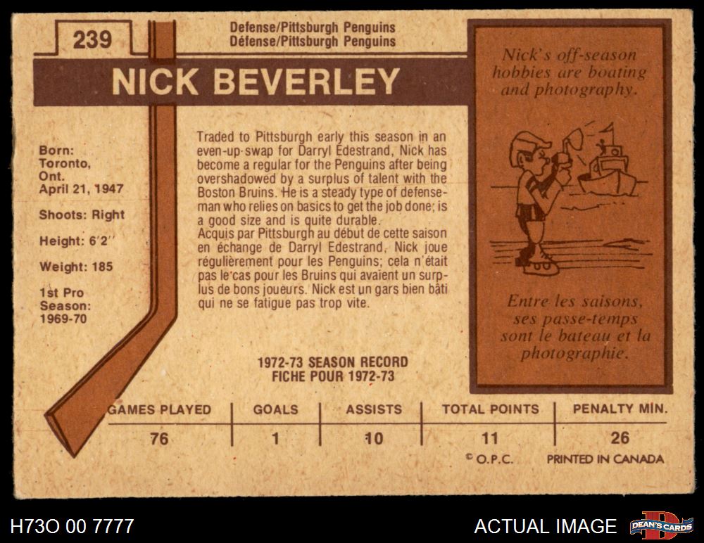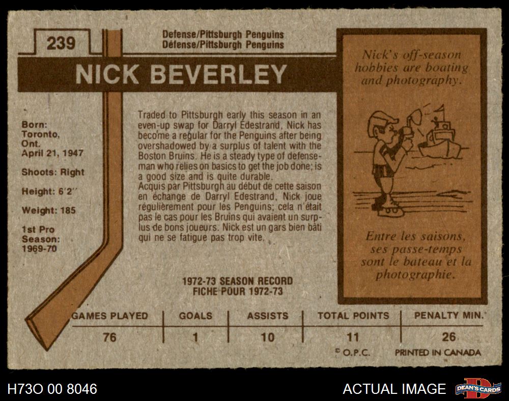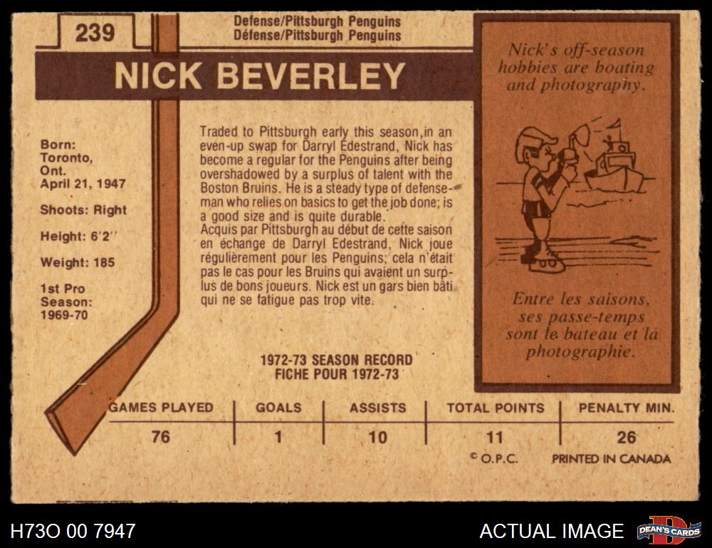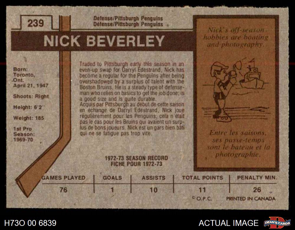 1973 O-Pee-Chee #239 Nick Beverley
