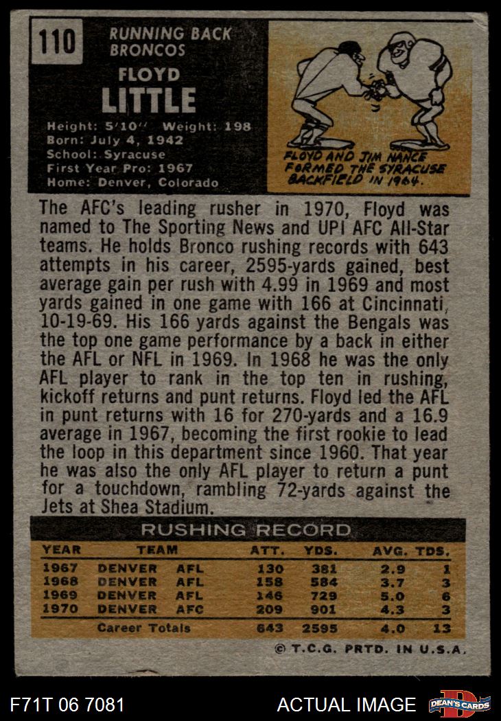 1971 Topps #110 Floyd Little 1.5 - FAIR