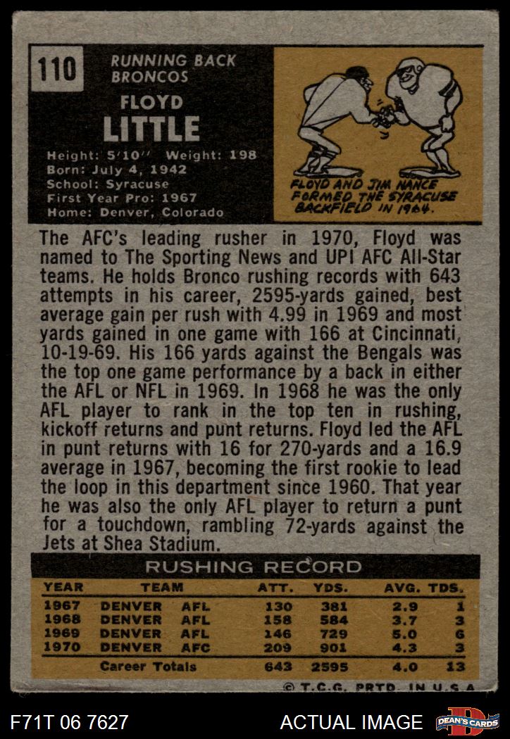 1971 Topps #110 Floyd Little 3 - VG