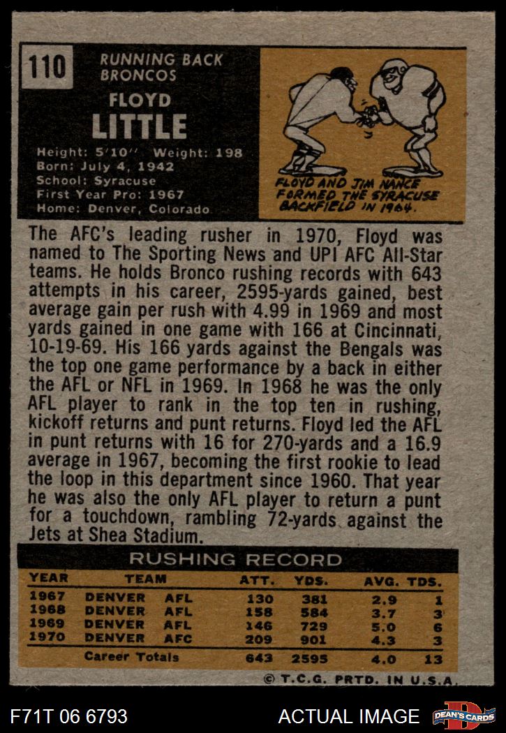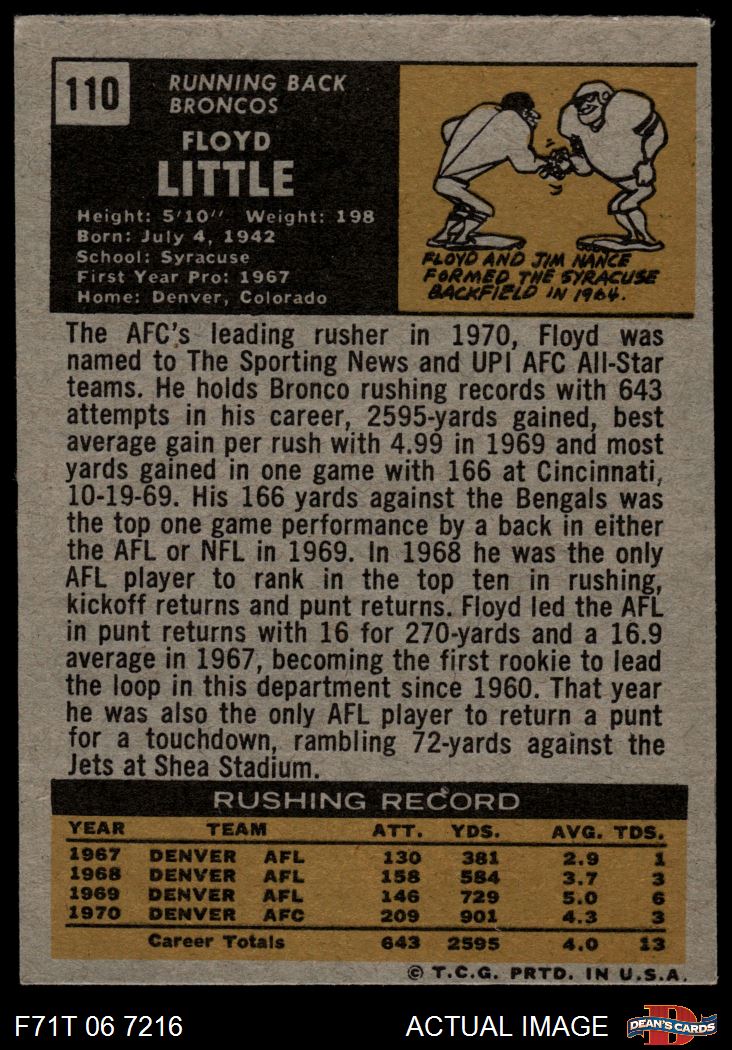 1971 Topps #110 Floyd Little 4 - VG/EX