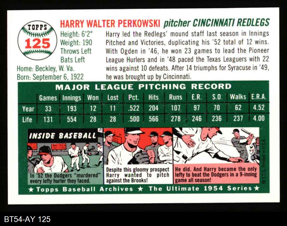 1954 Topps Archives #125 Harry Perkowski 8 - NM/MT