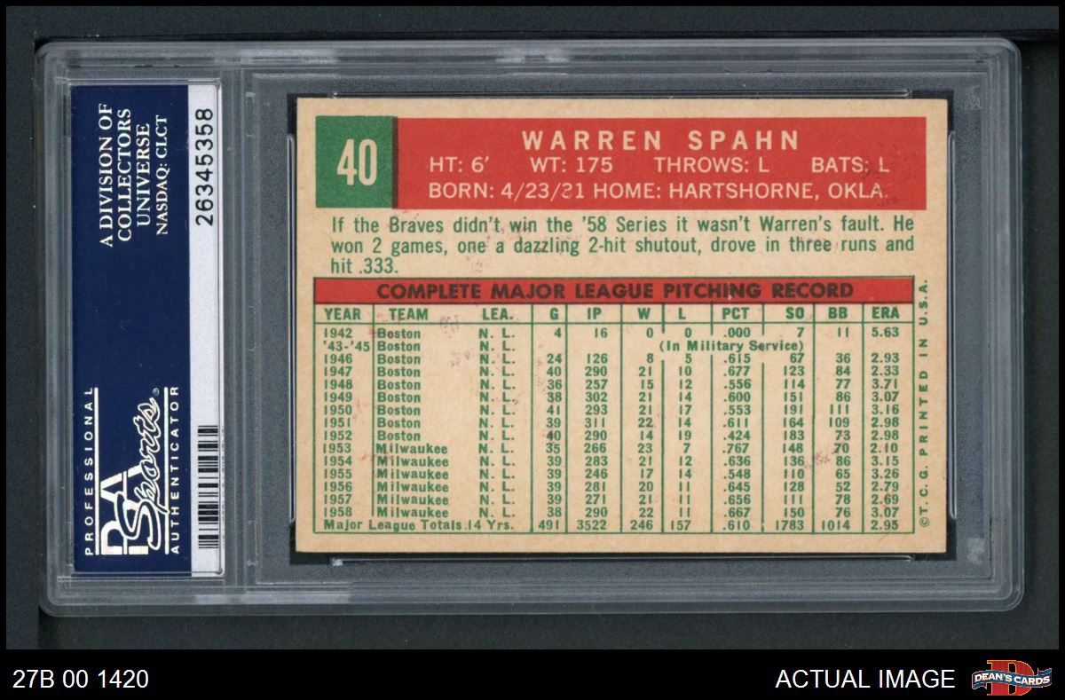 1959 Topps #40 OBS Warren Spahn PSA 6.5 - EX/MT+