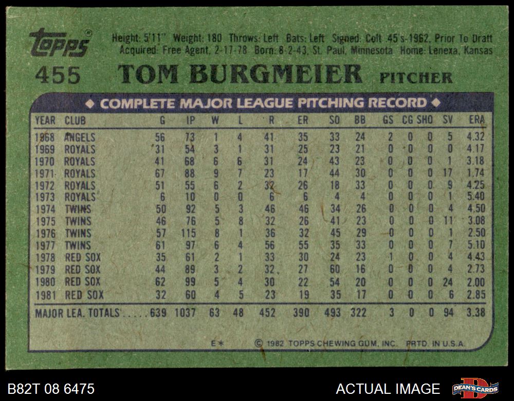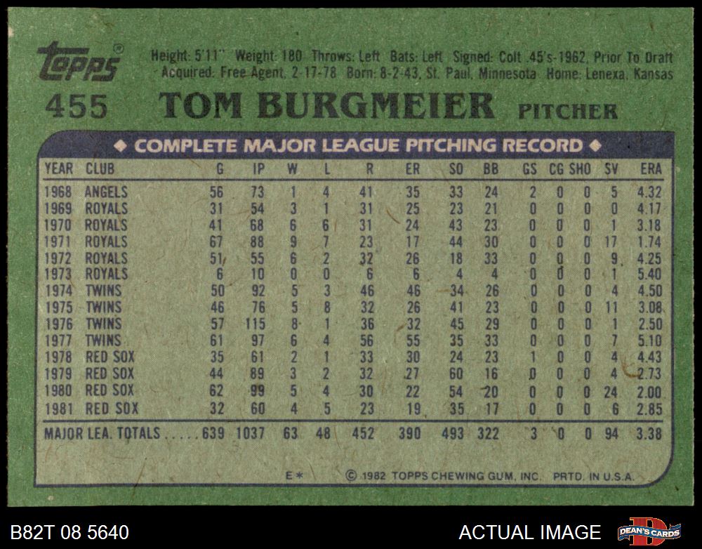 1982 Topps #455 Tom Burgmeier 6 - EX/MT