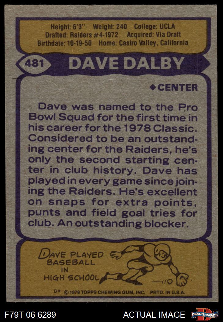 1979 Topps #481 Dave Dalby 2 - GOOD