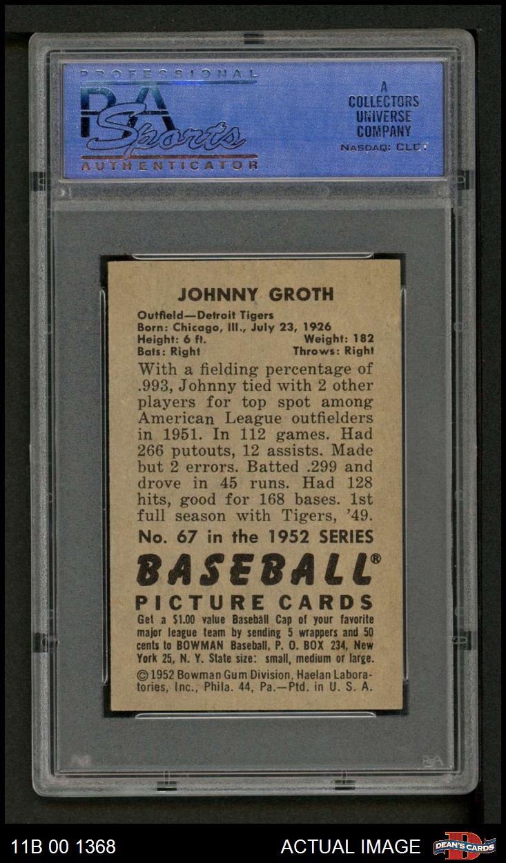 1952 Bowman #67 Johnny Groth PSA 8 - NM/MT
