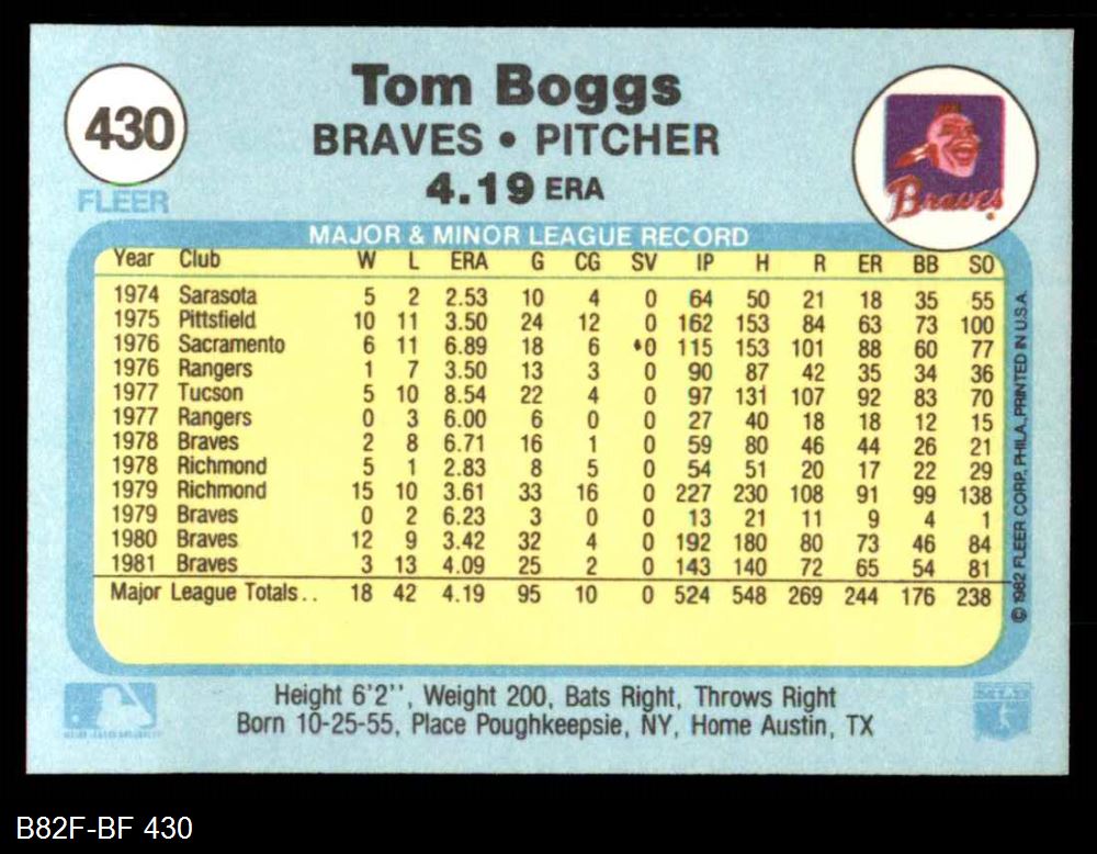 1982 Fleer #430 Tommy Boggs 8 - NM/MT