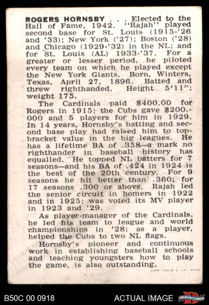 1950 Callahan Hall of Fame Rogers Hornsby 3 - VG