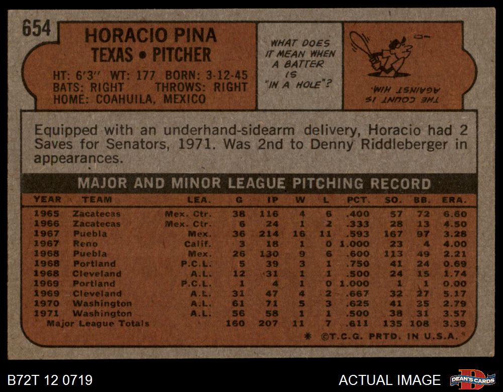 1972 Topps #654 Horacio Pina 5.5 - EX+