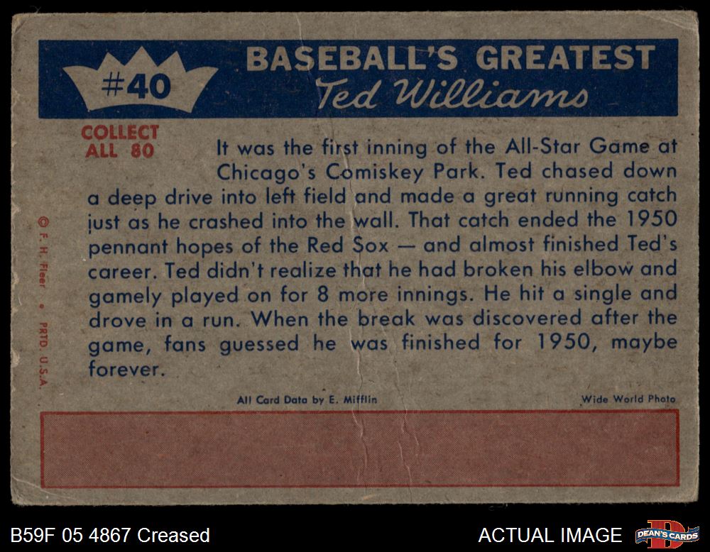 1959 Fleer #40 - Ted Williams Ted Crashes Into Wall 3 - VG