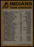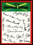 1974 Topps  Cleveland Indians Red Team Checklist Front Thumbnail