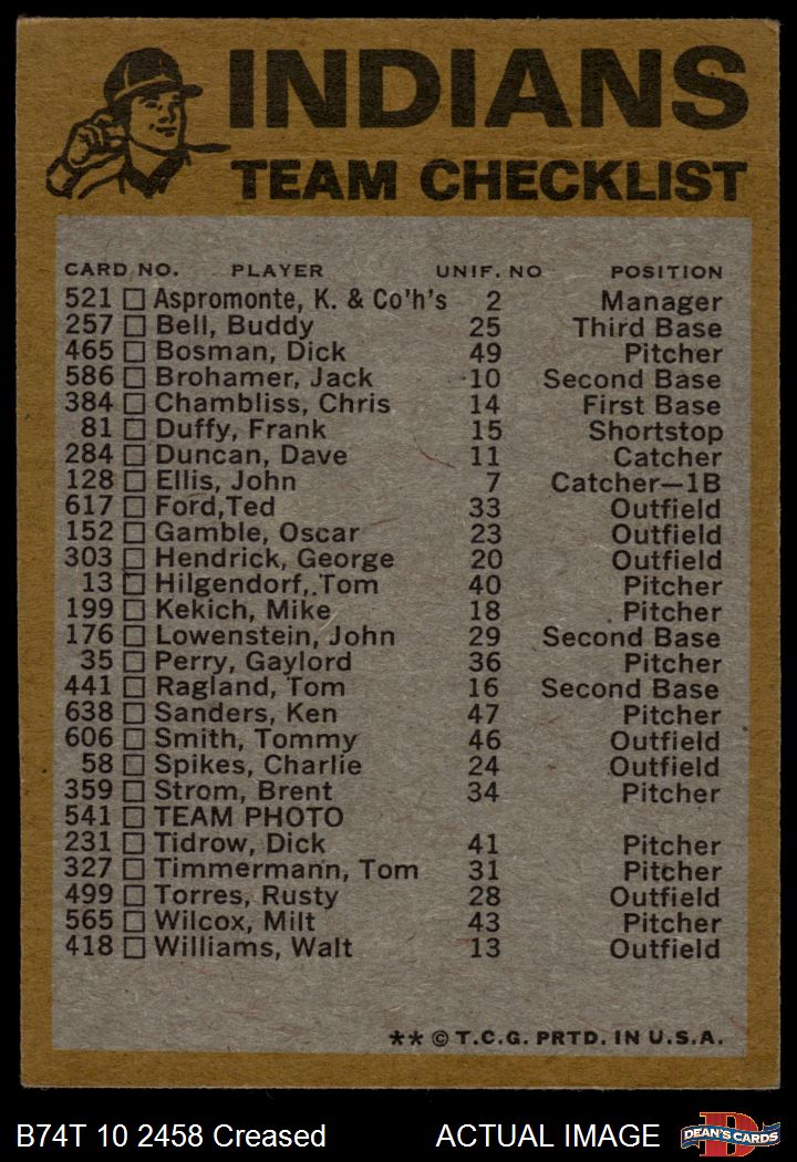 1974 Topps Cleveland Indians Red Team Checklist 3 - VG