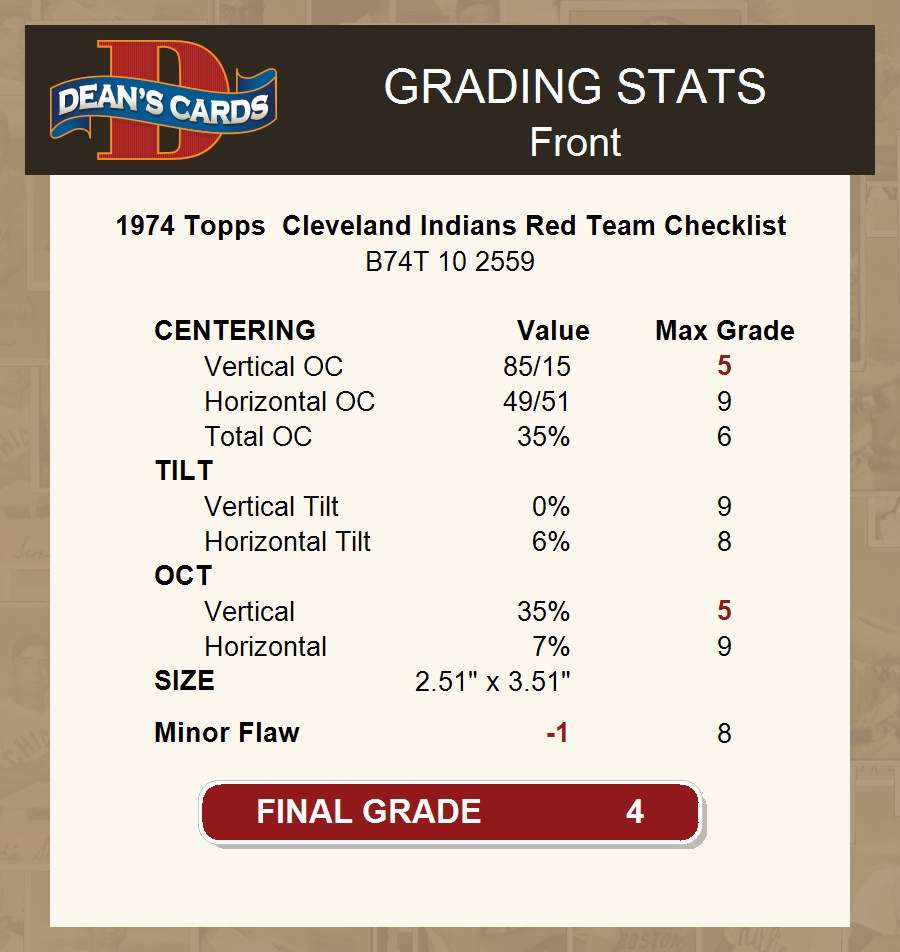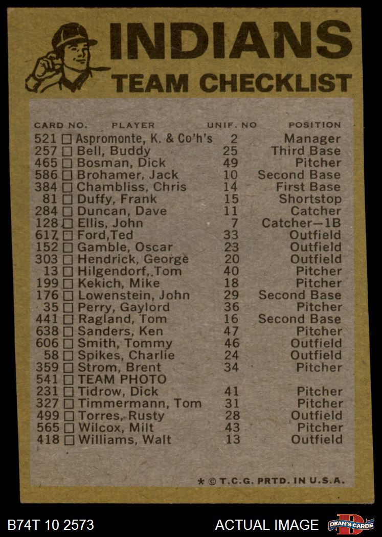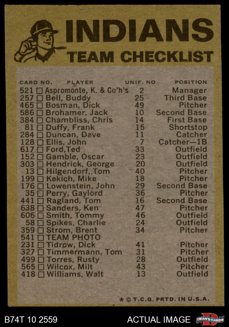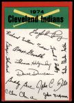 1974 Topps Cleveland Indians Red Team Checklist 4 - VG/EX
