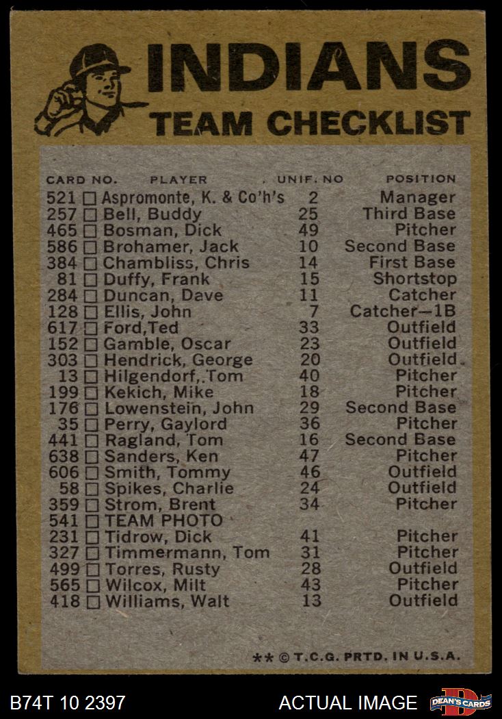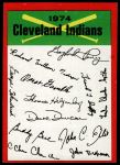 1974 Topps Cleveland Indians Red Team Checklist 5 - EX