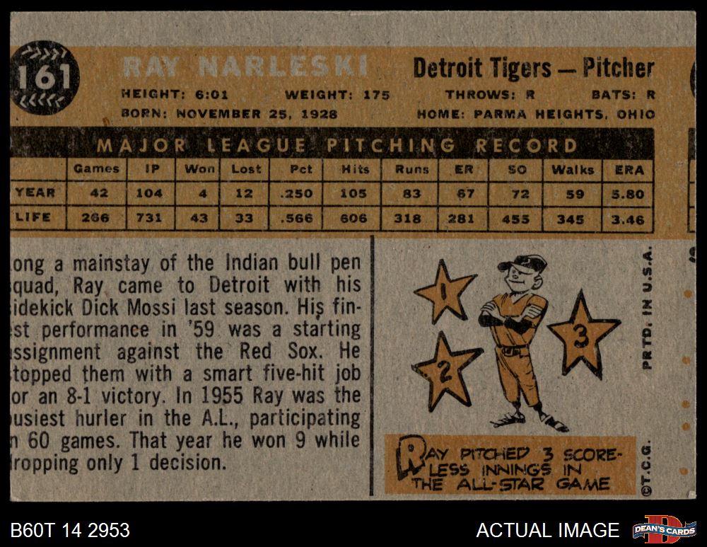 1960 Topps #161 Ray Narleski 2 - GOOD