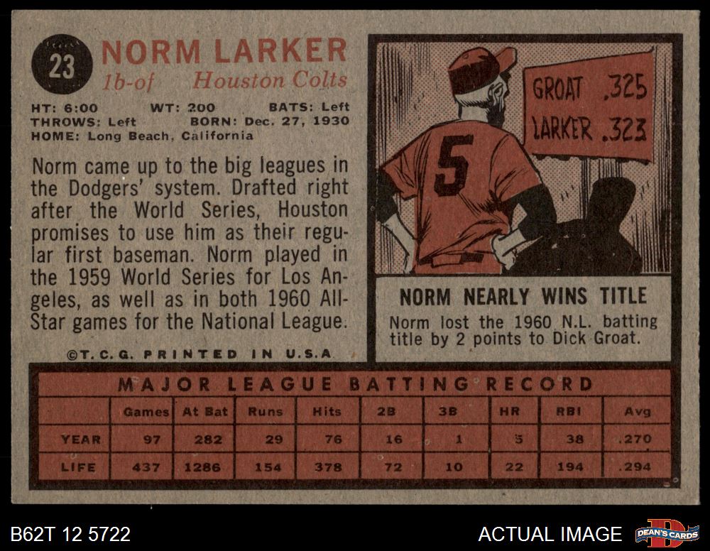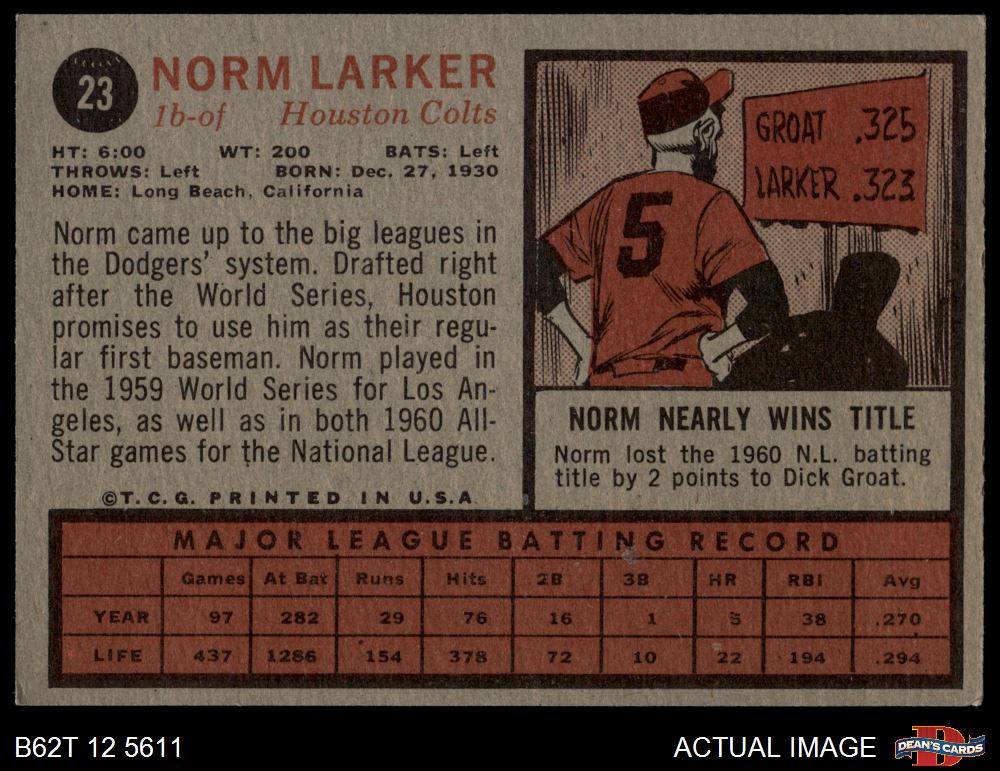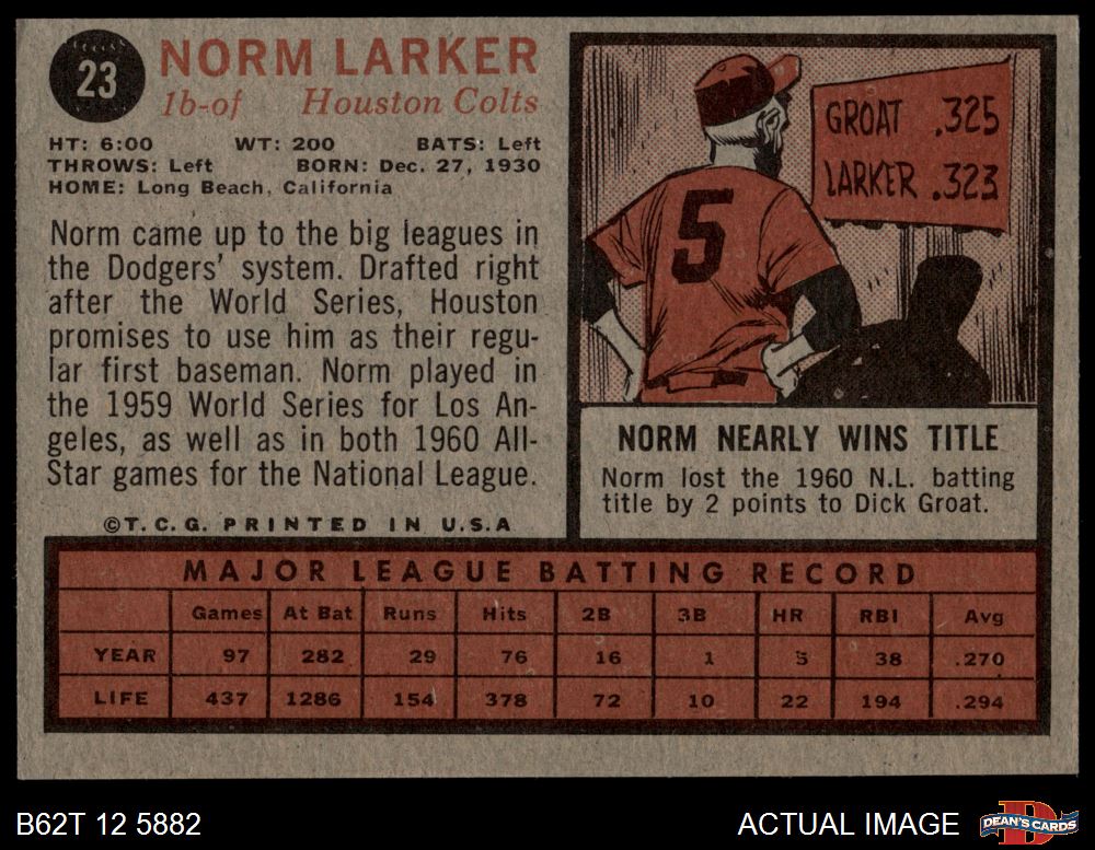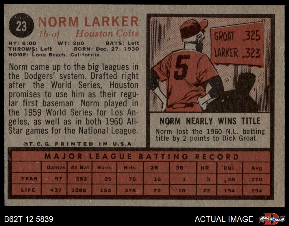 1962 Topps #23 Norm Larker 4 - VG/EX
