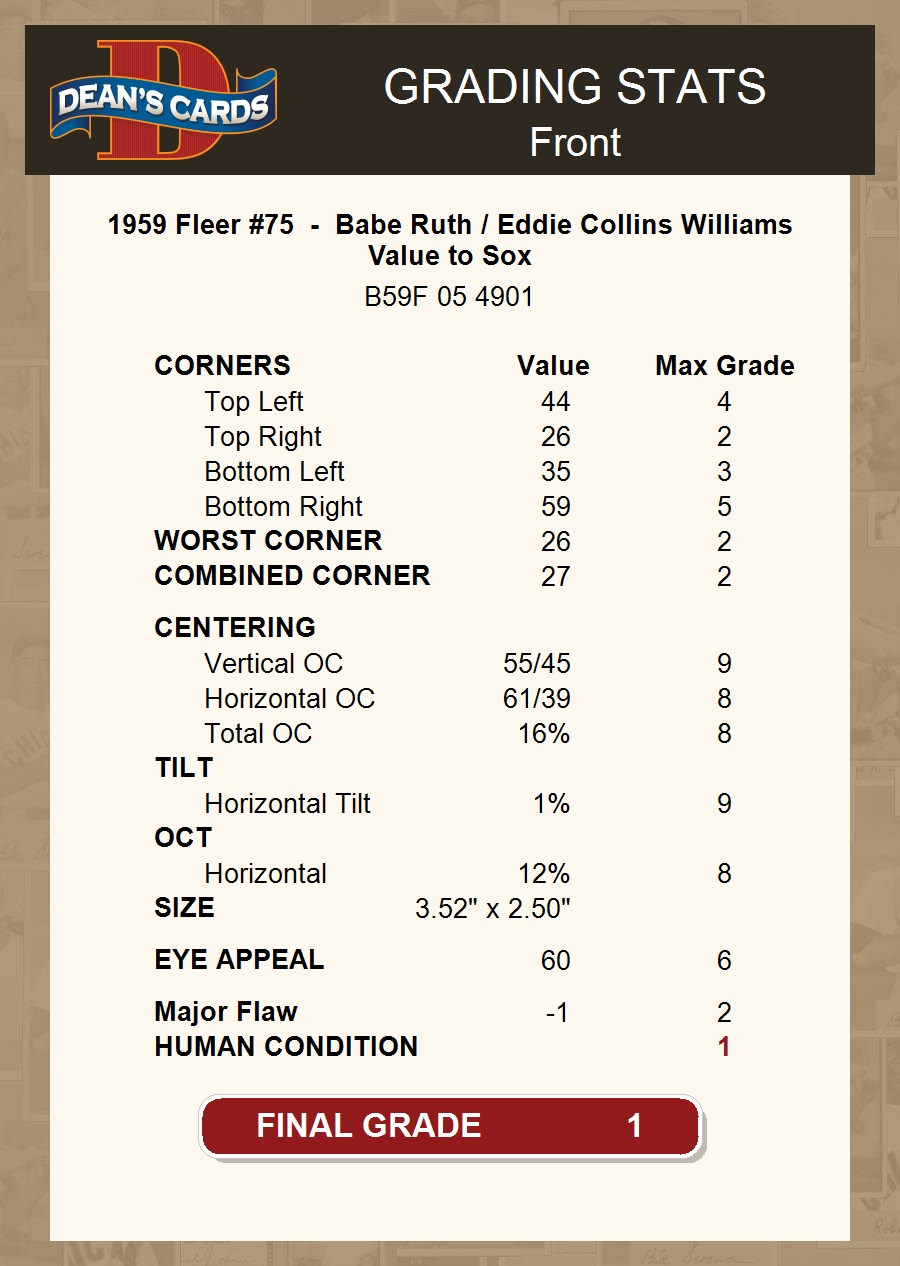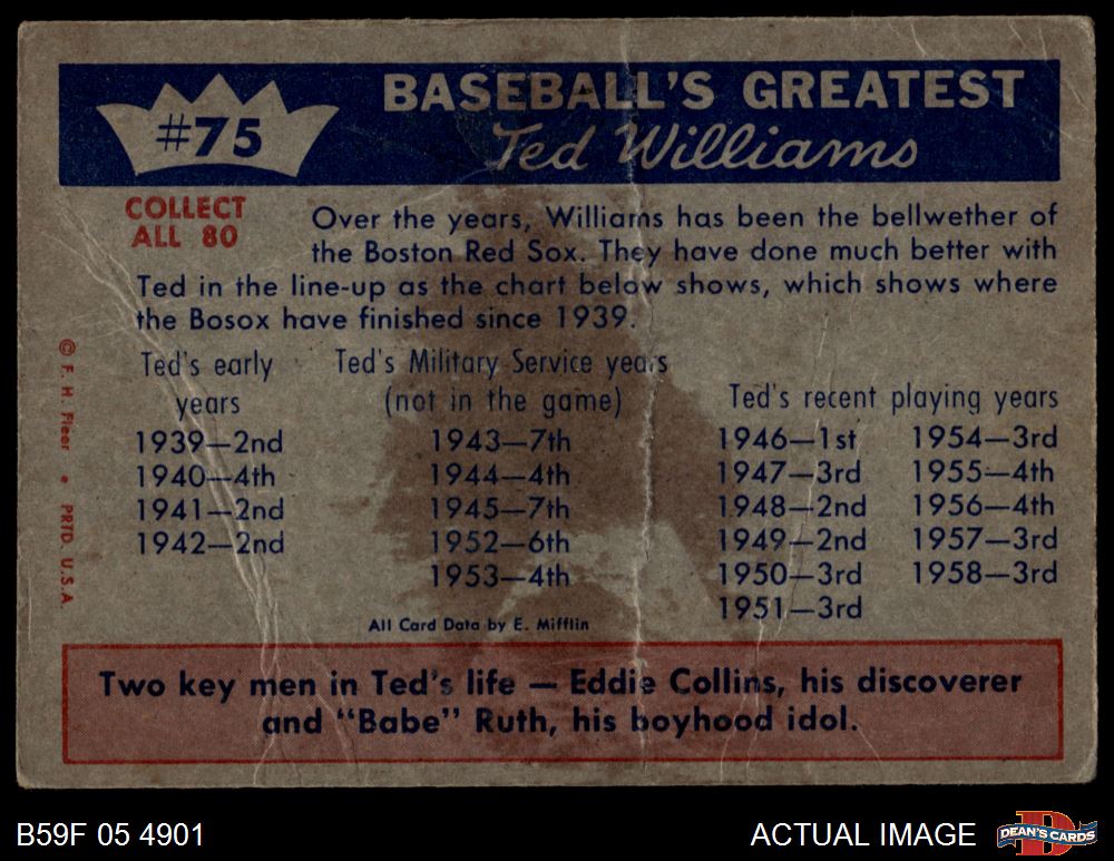 1959 Fleer #75 - Babe Ruth / Eddie Collins Williams Value to Sox 1 - POOR