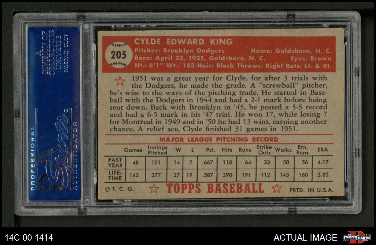 1952 Topps #205 Clyde King PSA 4 - VG/EX