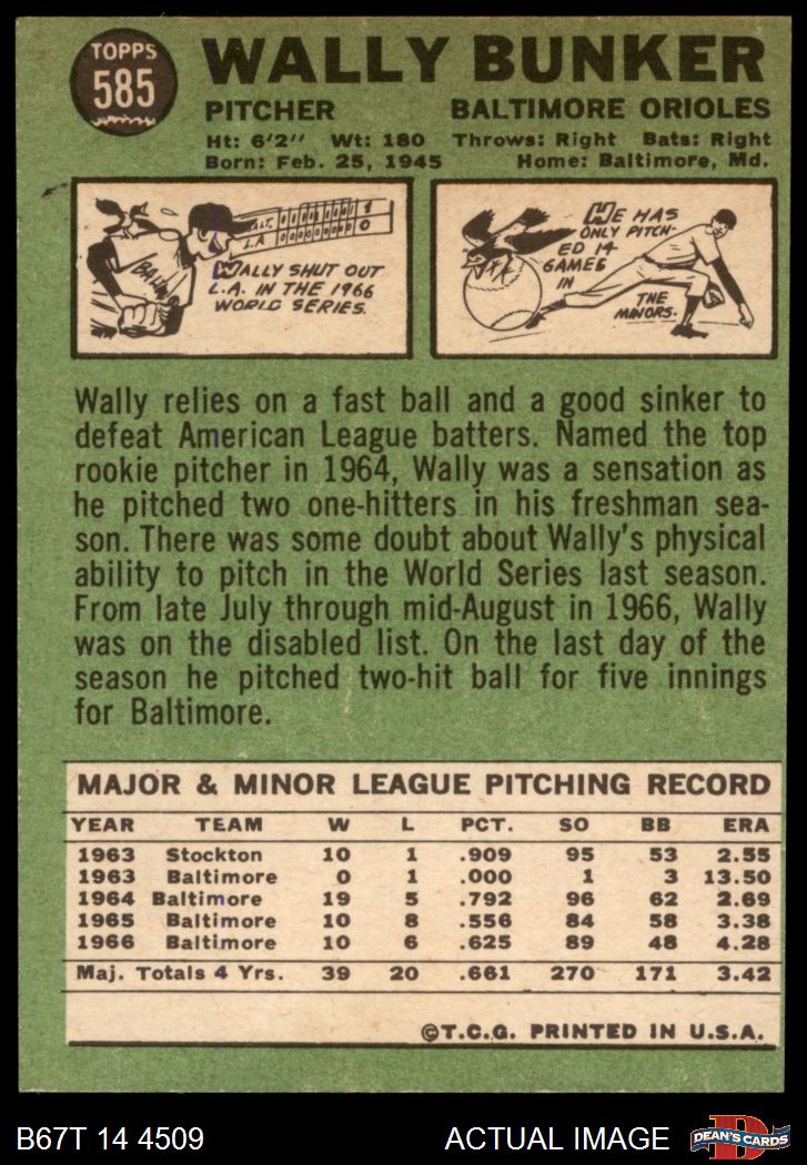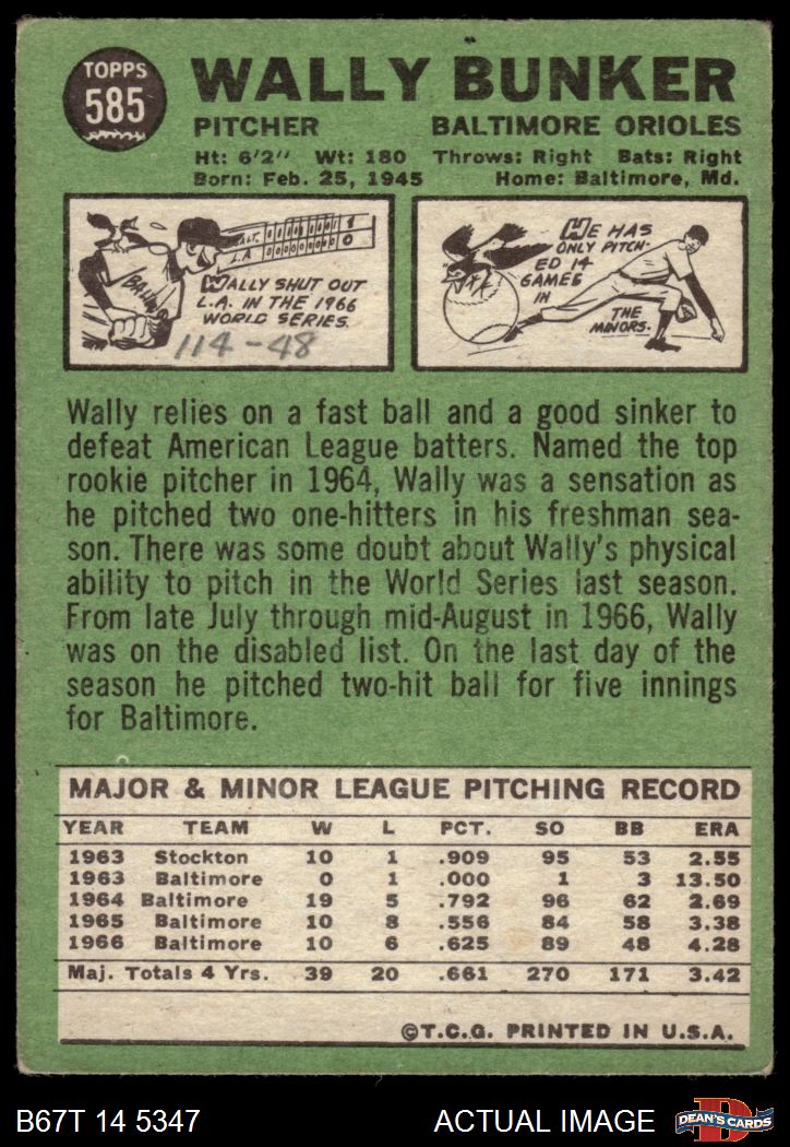 1967 Topps #585 Wally Bunker 2 - GOOD