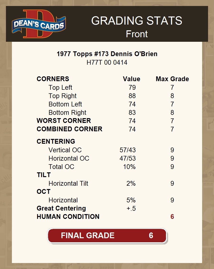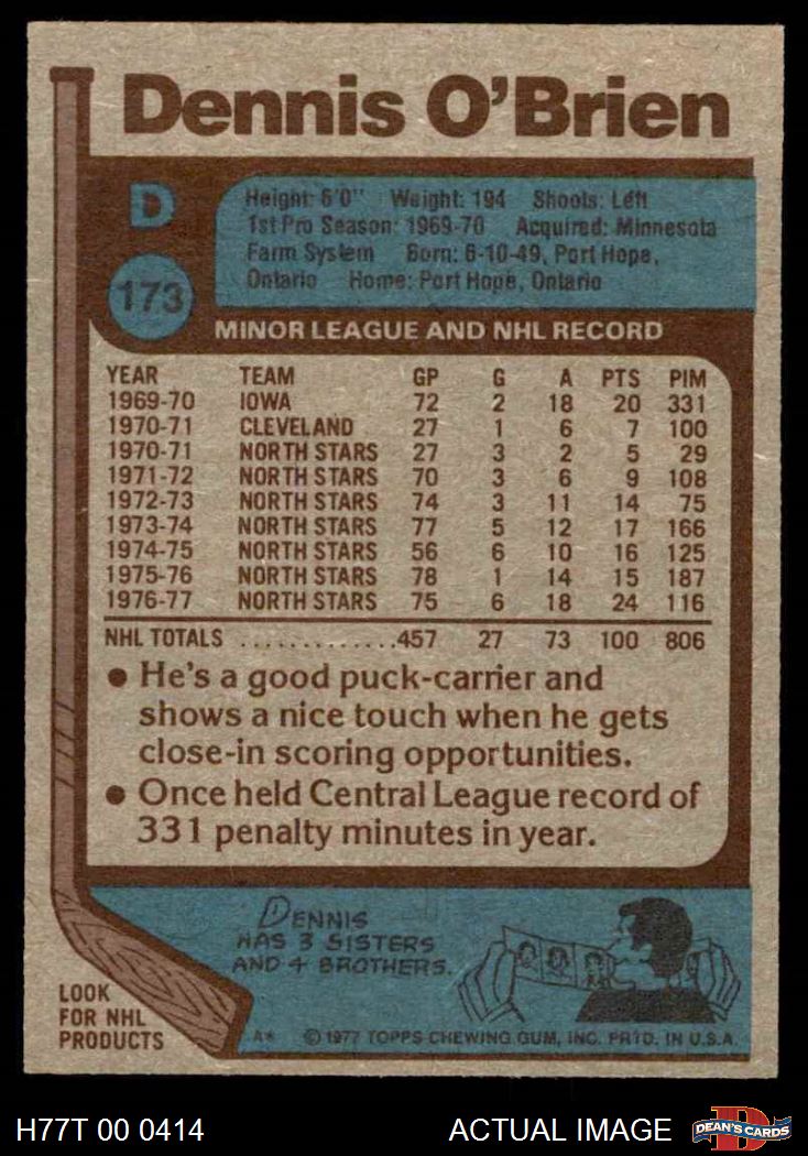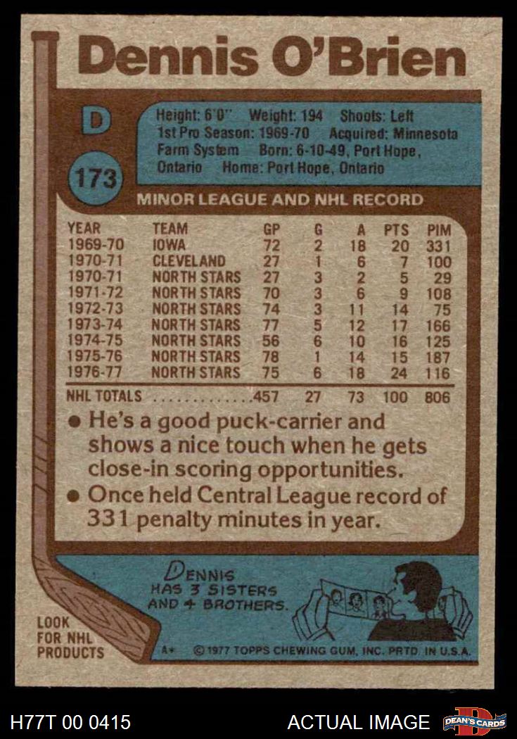 1977 Topps #173 Dennis O'Brien 6 - EX/MT