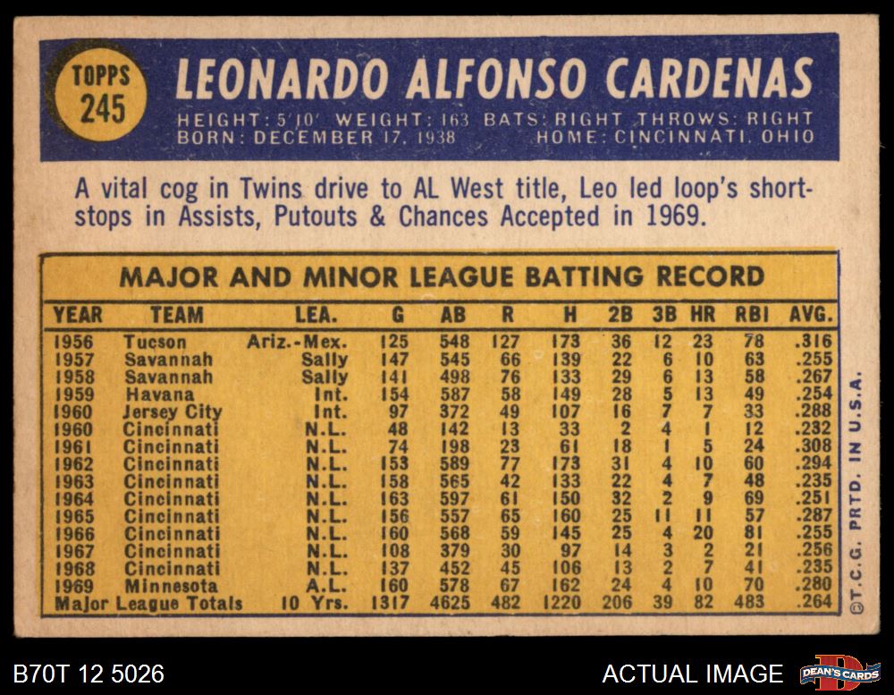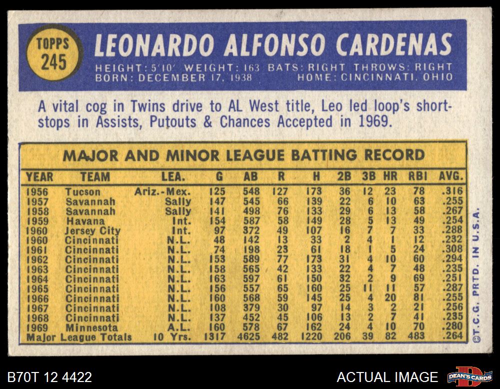 1970 Topps #245 Leo Cardenas 4 - VG/EX
