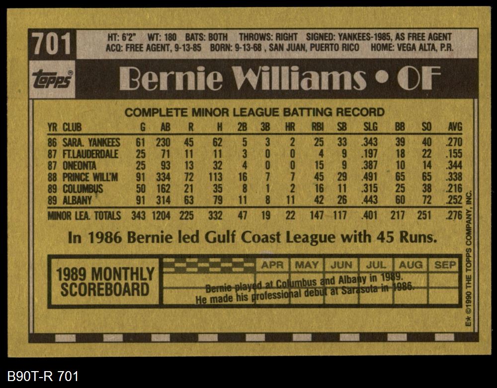 1990 Topps #701 Bernie Williams 8 - NM/MT