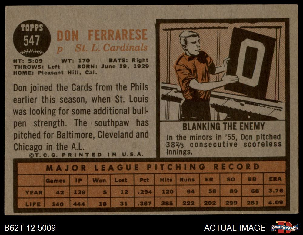 1962 Topps Baseball Cards (15,054 available)1962 Topps Cardinals (1,062 available)