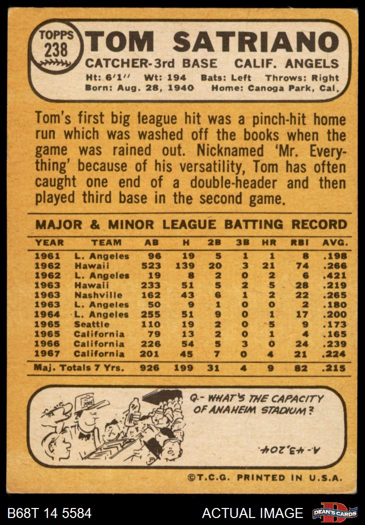 1968 Topps #238 Tom Satriano 4.5 - VG/EX+