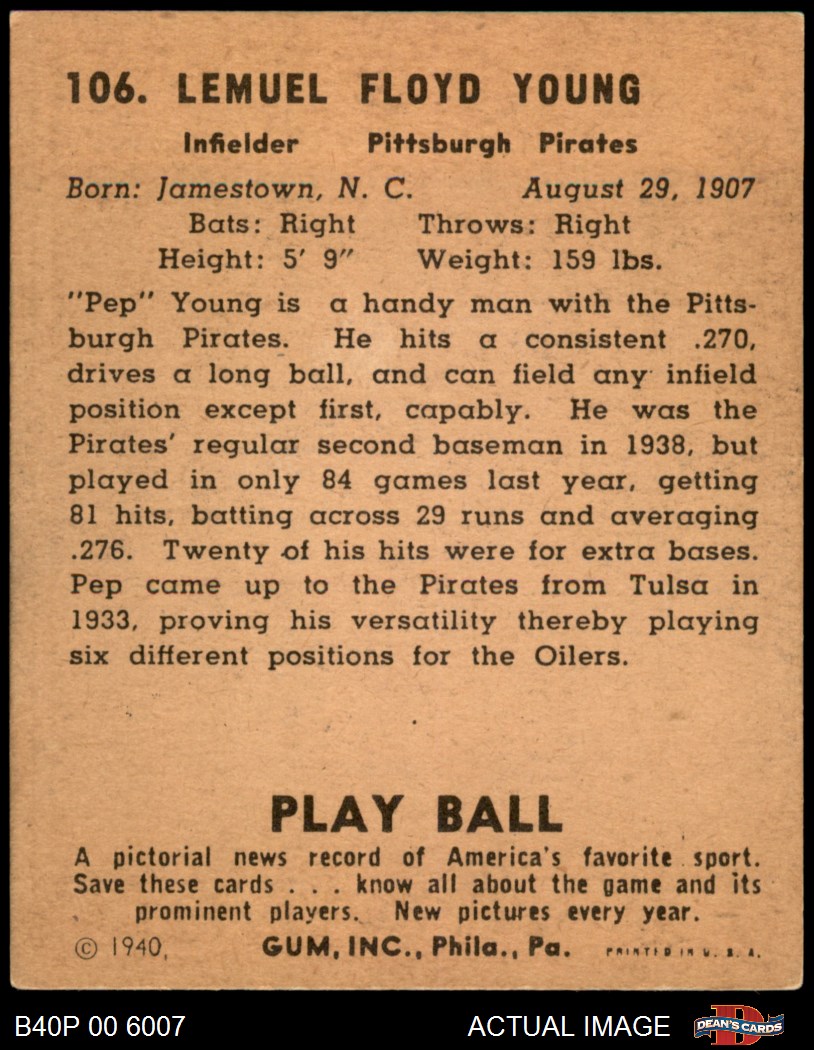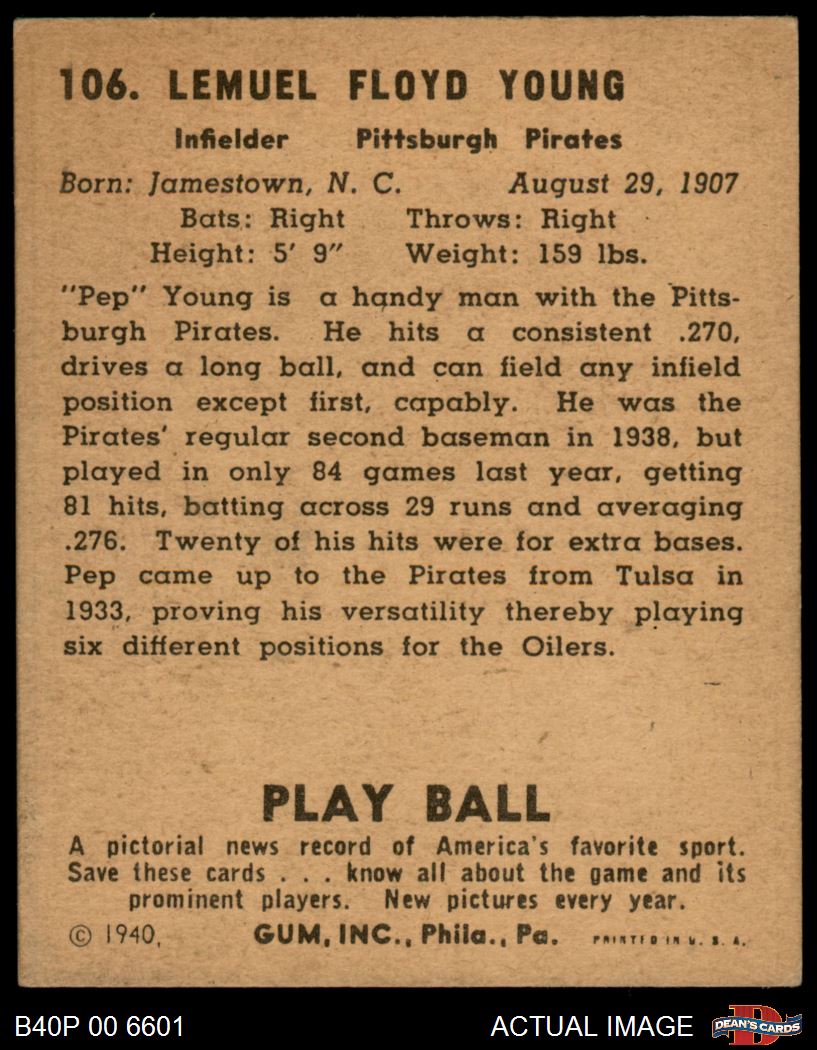 1940 Play Ball #106 Pep Young 4 - VG/EX