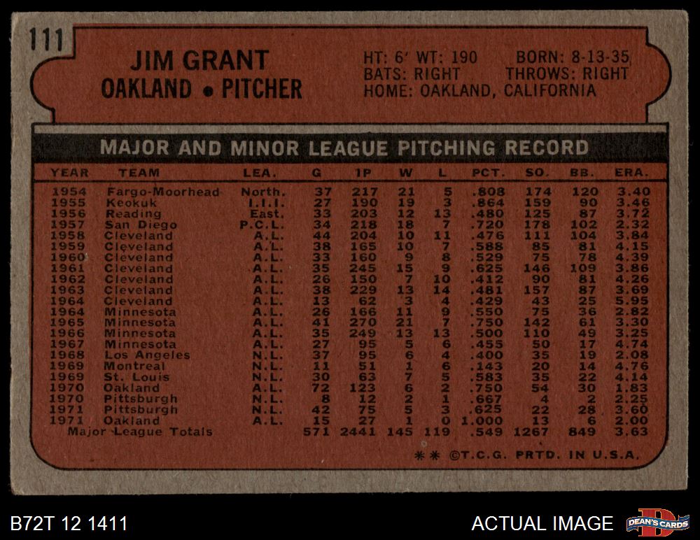 1972 Topps #111 Jim Grant 2.5 - GD+