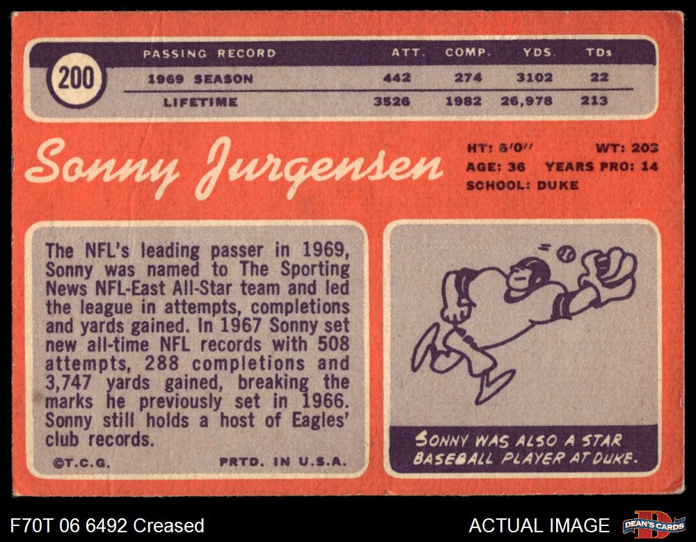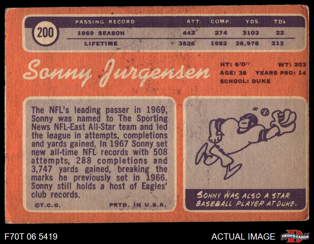 1970 Topps #200 Sonny Jurgensen