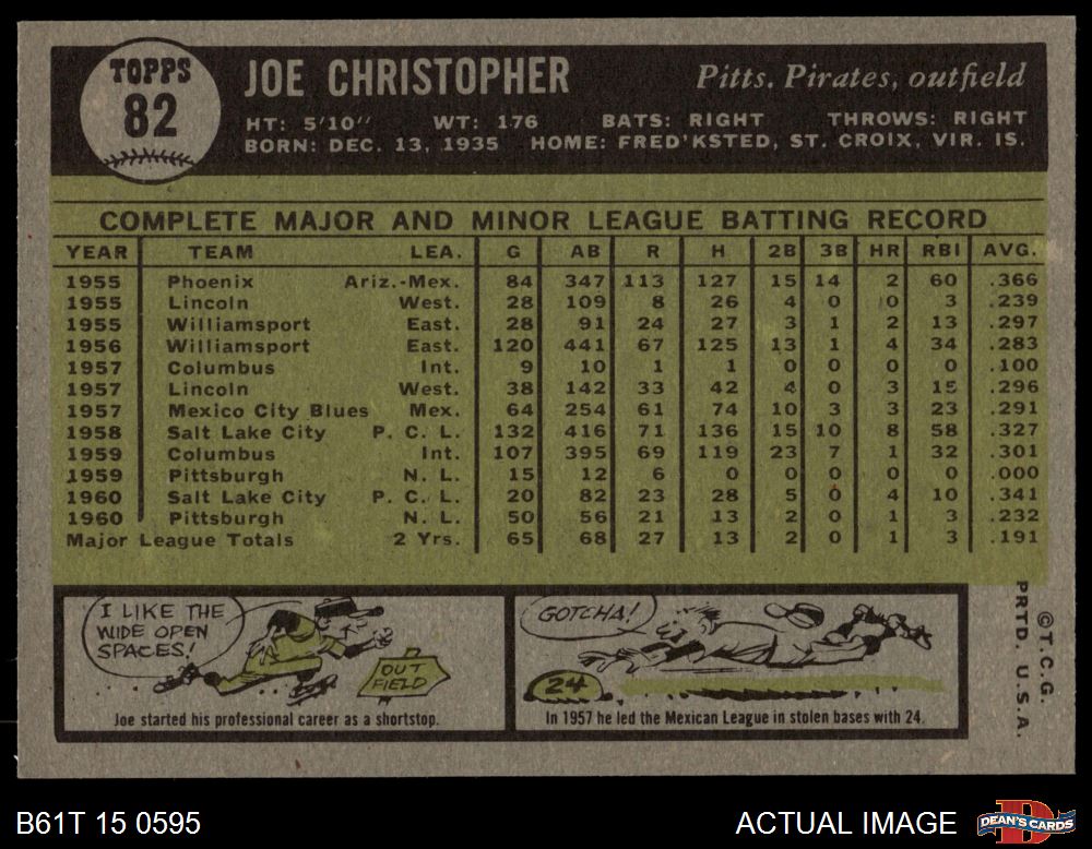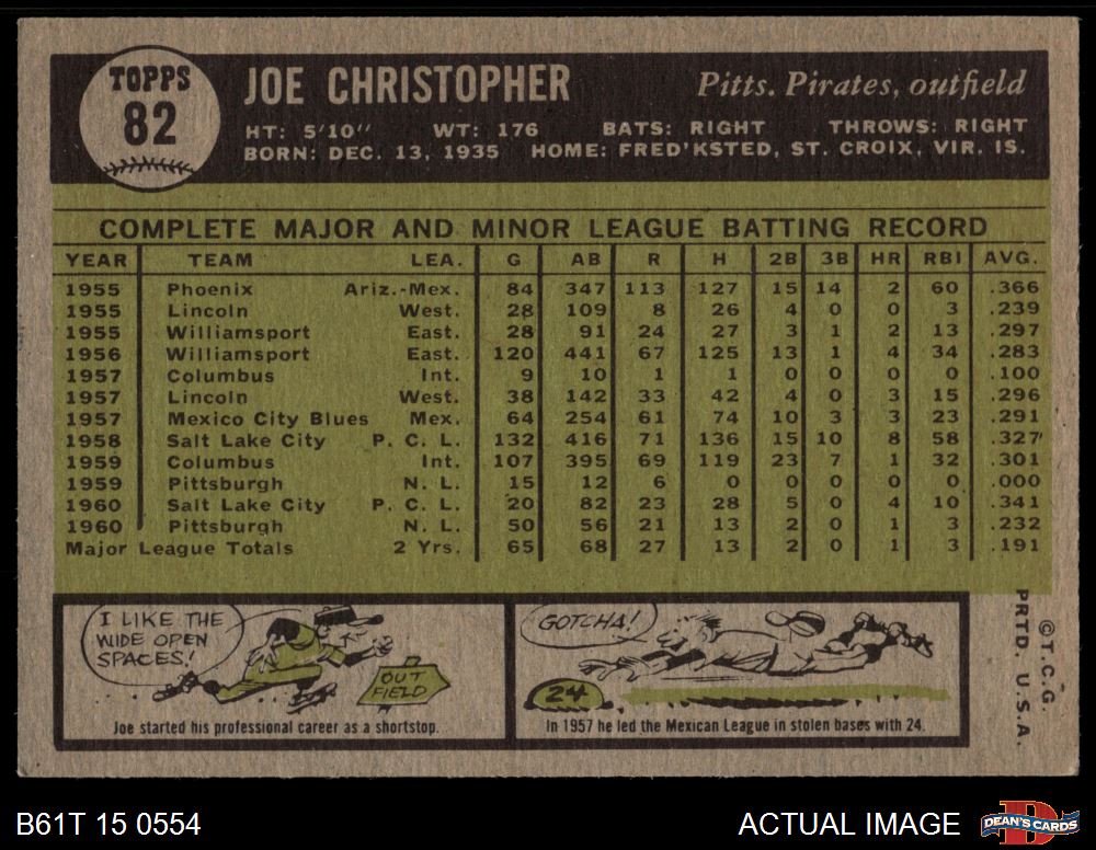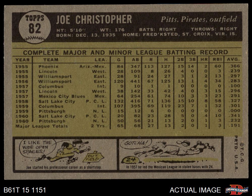 1961 Topps #82 Joe Christopher