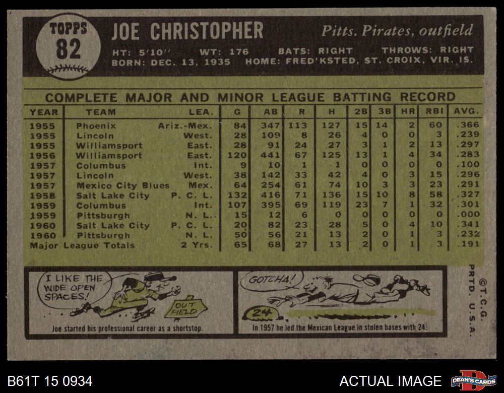 1961 Topps #82 Joe Christopher 4 - VG/EX