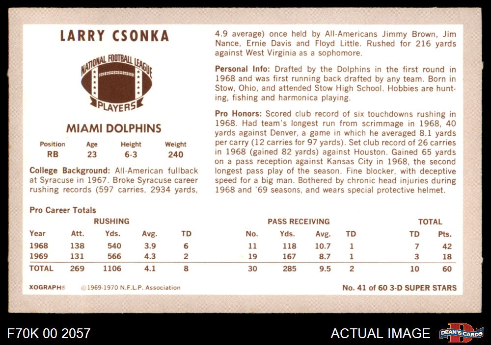 1970 Kellogg's #41 Larry Csonka 7 - NM