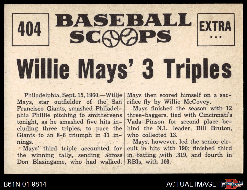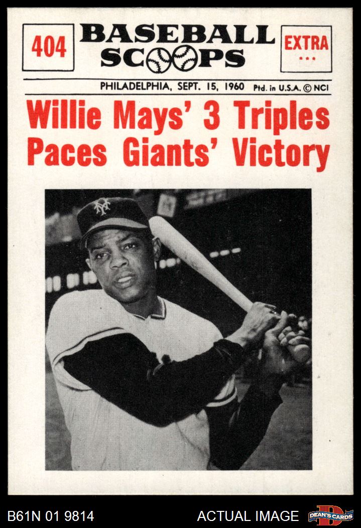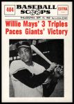 1961 Nu-Card Scoops #404 - Willie Mays 3 Triples Paces Giants' Victory 8 - NM/MT
