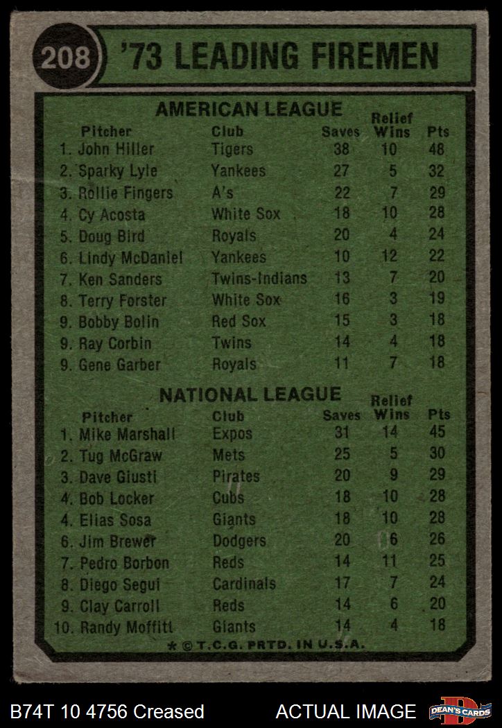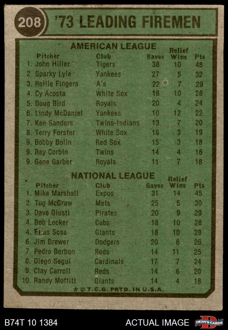 1974 Topps #208 - John Hiller / Mike Marshall Leading Firemen 2 - GOOD