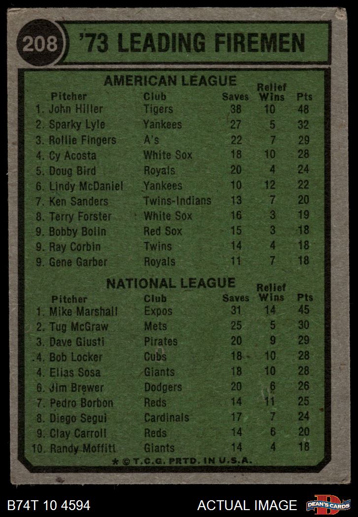 1974 Topps #208 - John Hiller / Mike Marshall Leading Firemen 4 - VG/EX