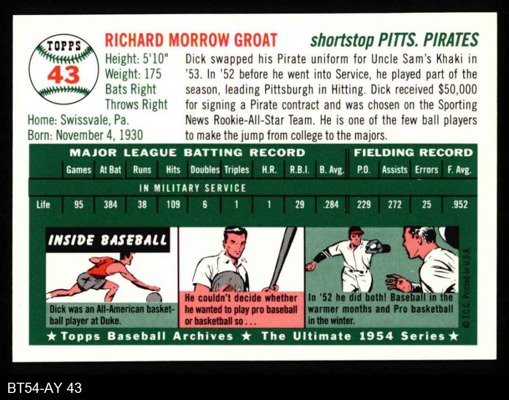 1954 Topps Archives #43 Dick Groat 8 - NM/MT