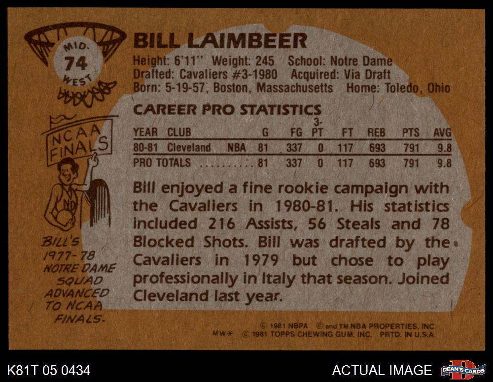 1981 Topps #74 MW Bill Laimbeer 7 - NM