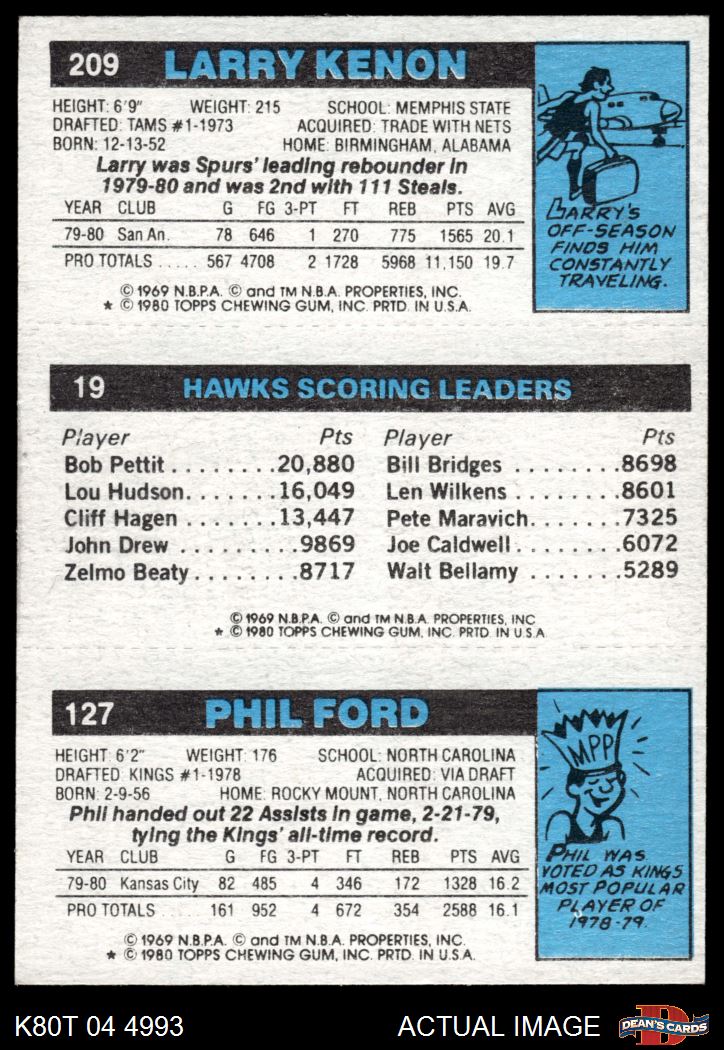 1980 Topps - Phil Ford / John Drew / Larry Kenon 127 / 19 / 209 7 - NM