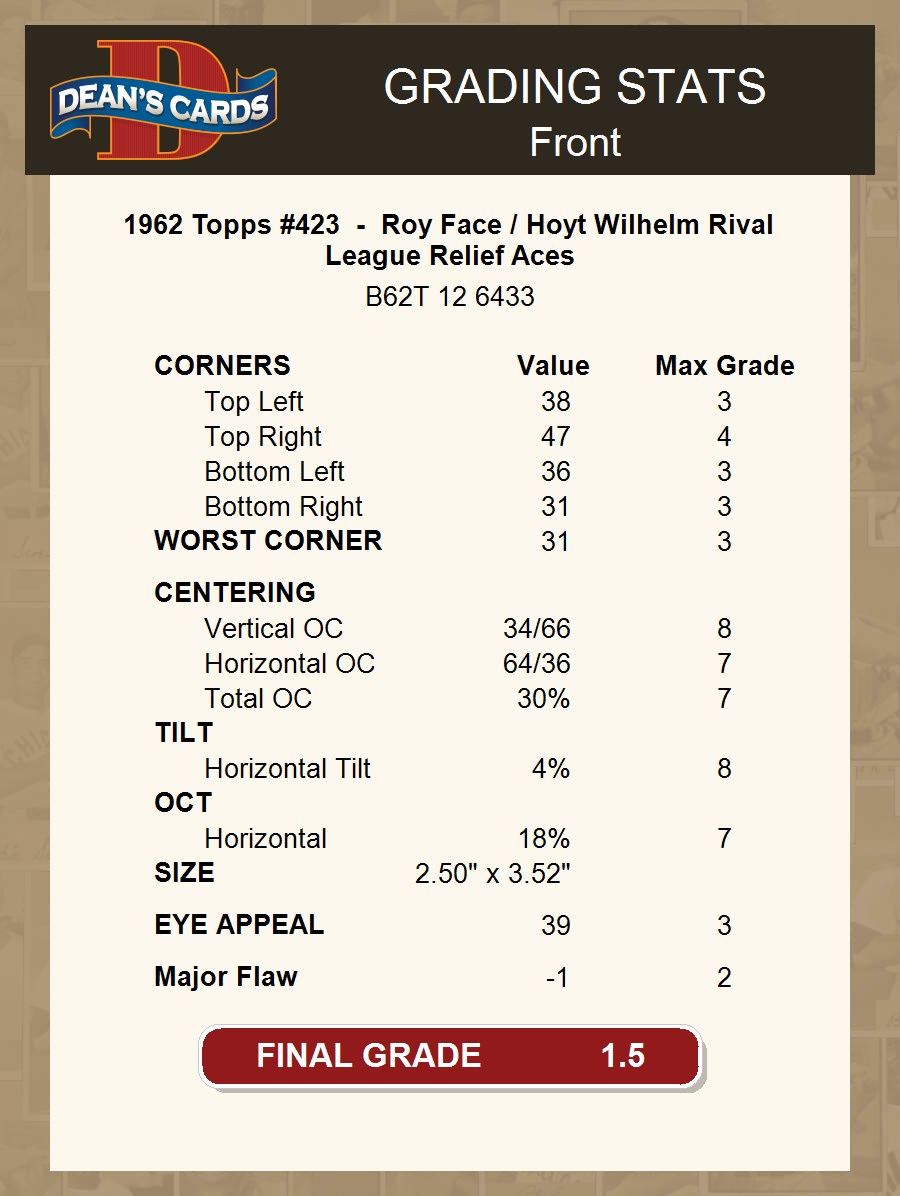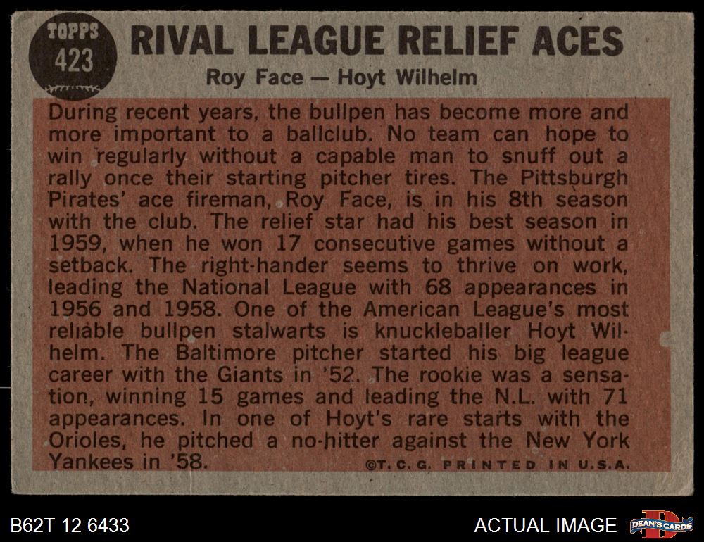 1962 1962 #423 - Roy Face / Hoyt Wilhelm Rival League Relief Aces 1.5 - FAIR