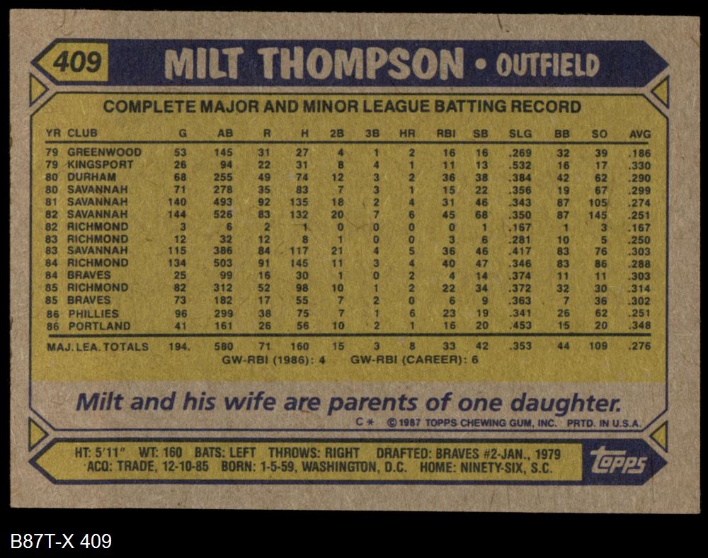 1987 Topps #409 Milt Thompson