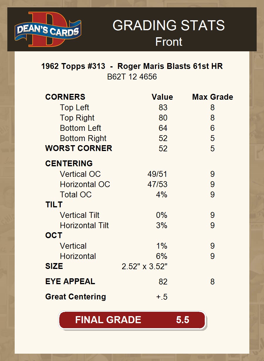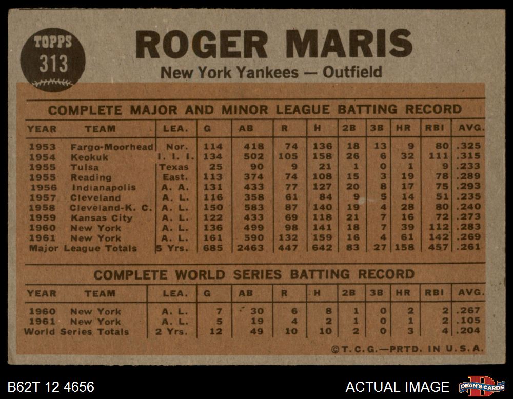 1962 Topps #313 - Roger Maris Blasts 61st HR 5.5 - EX+