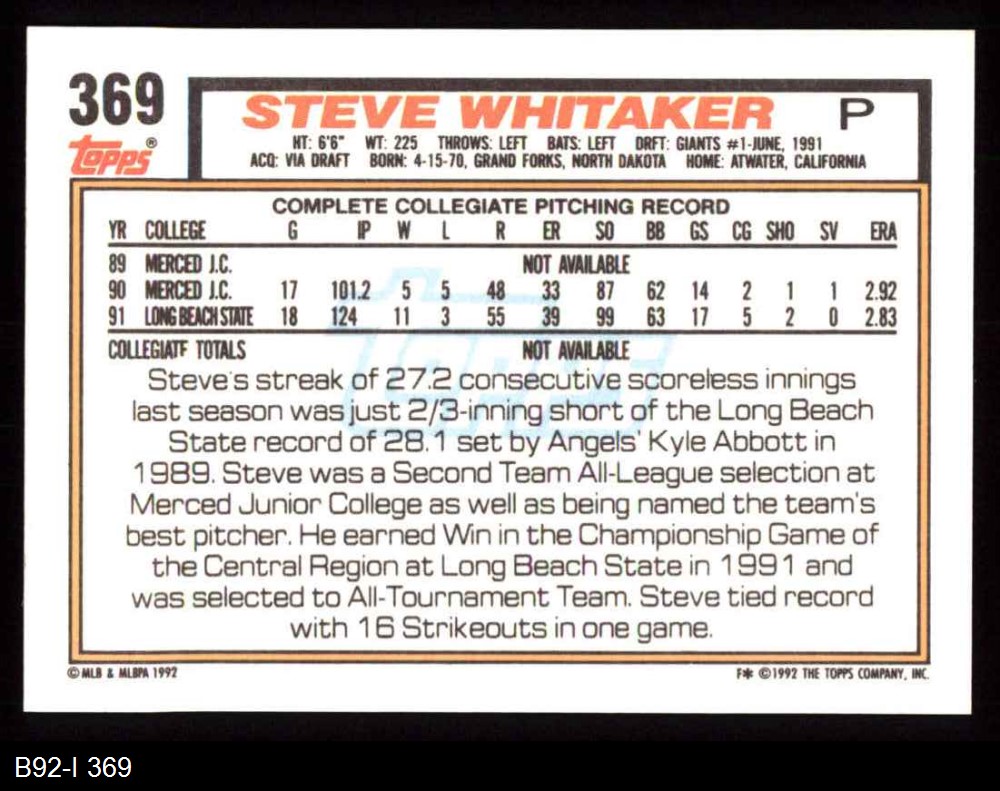 1992 Topps #369 Steve Whitaker