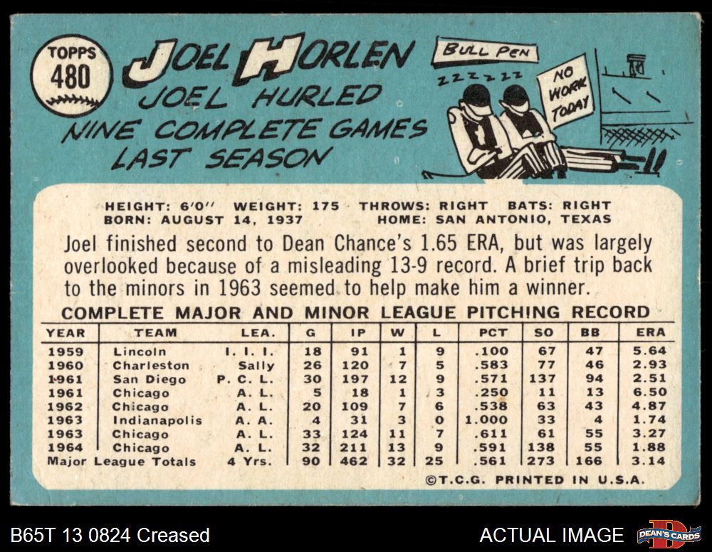 1965 Topps #480 Joel Horlen Front Thumbnail