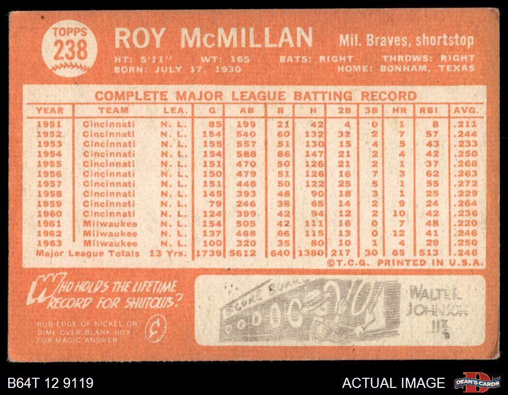 1964 Topps #238 Roy McMillan 1.5 - FAIR