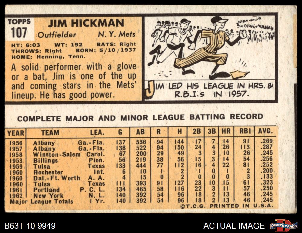 1963 Topps #107 Jim Hickman 1.5 - FAIR